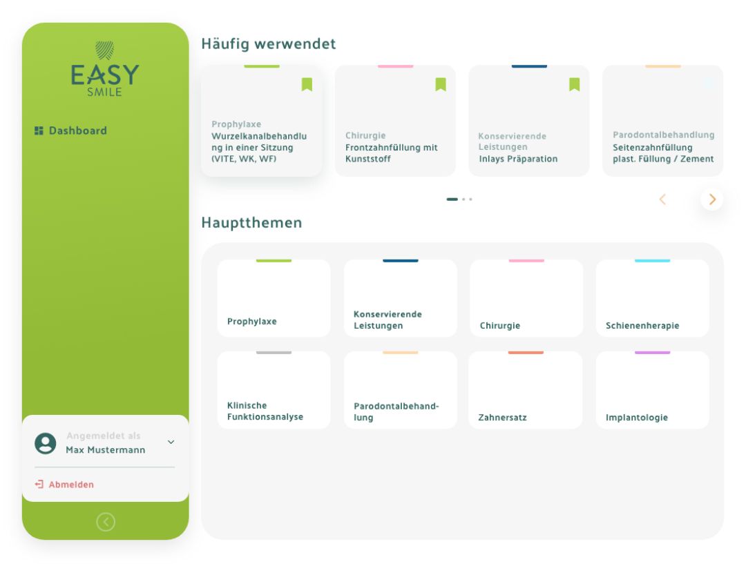 Mit unserer übersichtlichen und einfach zu bedienenden App bieten wir Ihnen den idealen digitalen Begleiter für Ihr Behandlungszimmer. Schaffen Sie mit Easy Smile eine höhere Transparenz, weniger Aufwand, weniger Fehler und vor allem weniger Stress für Ihre Praxis.